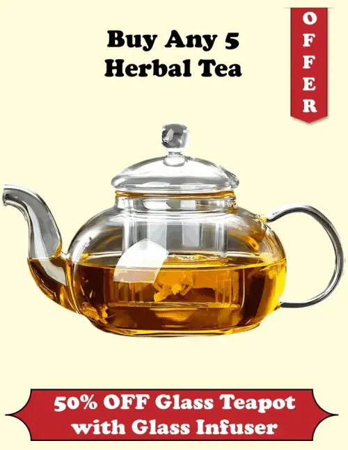 Get 50% OFF Glass Teapot with Glass Infuser– 400ml | Special Herbal Tea Offer